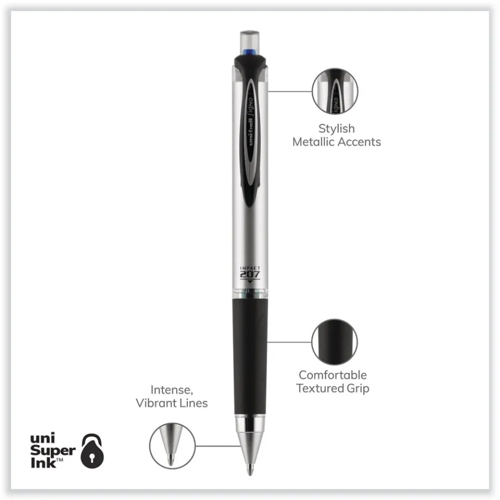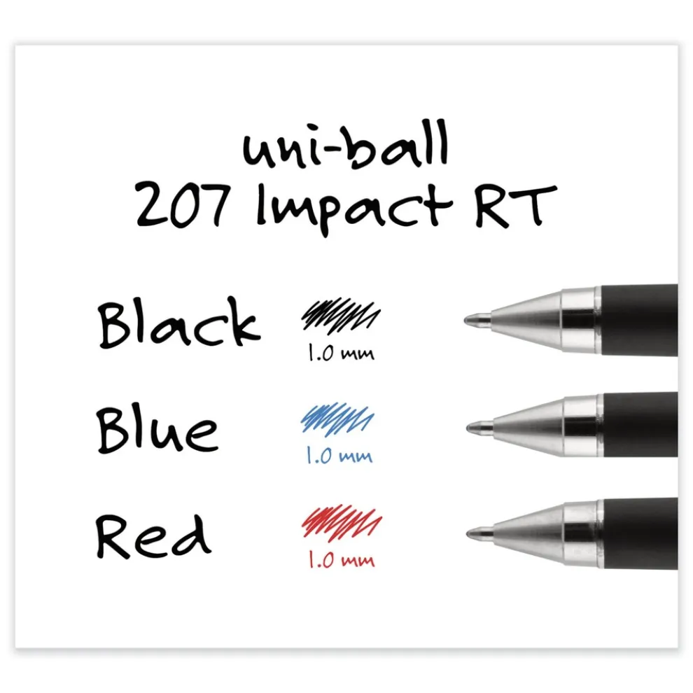 Make an impact and maintain it with 207 Impact RT Gel Retractable Pen Refills. They’re designed specifically for the sophisticated and stylish 207 Impact RT Gel Retractable Pen. Each refill features even-flowing, pigment-based gel ink to deliver the same outstanding ink laydown and luxurious writing experience that you’ve come to expect. Whether you’re signing important documentation, developing records for an archive or simply performing everyday writing tasks, you can also trust its quick-drying uni Super Ink technology to entrench your marks deep into the paper to prevent document alteration, water damage and fading. Its ultra-durable stainless-steel tip provides excellent bend and break resistance, while its smooth-glide point helps you produce the pronounced lines and lettering that make 207 Impact Gel Pens a professional’s first choice.