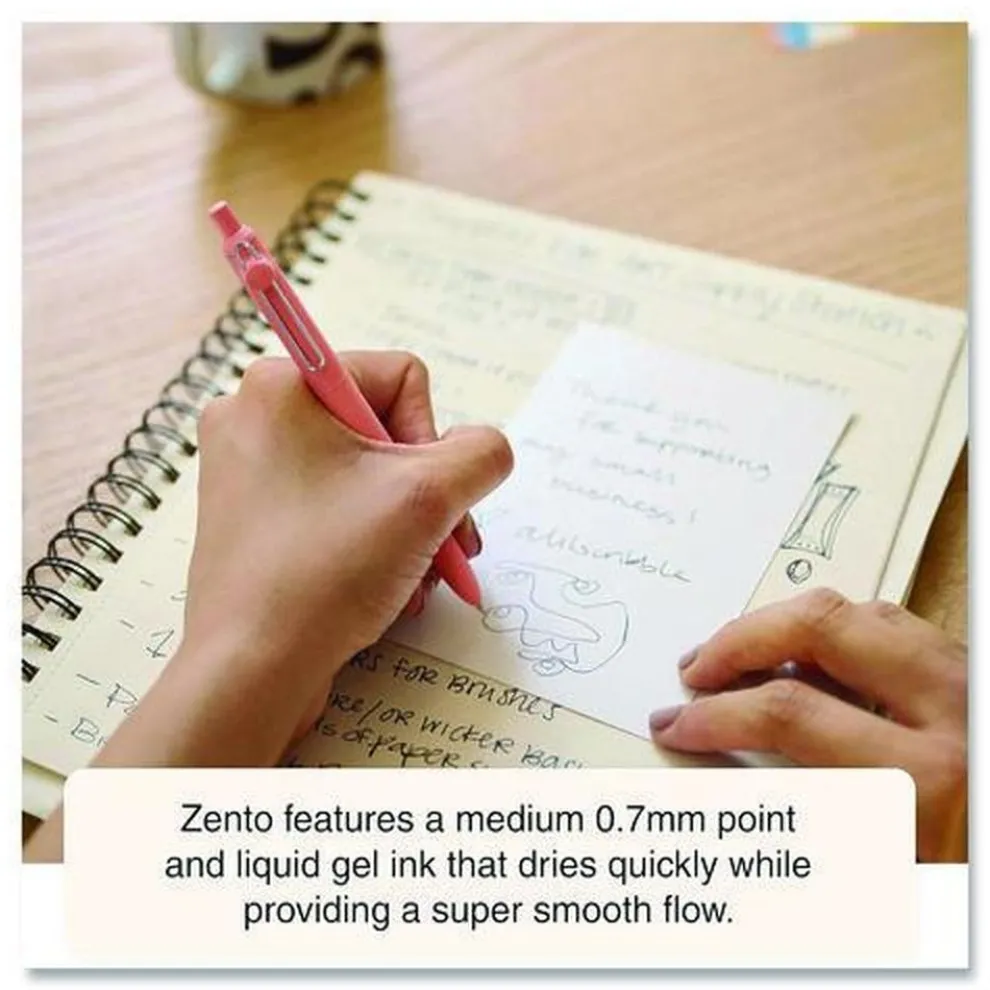 (1-Dozen) Medium 0.7 mm Zento Retractable Gel Pen – Black Ink, Assorted Barrel Colors – 70660