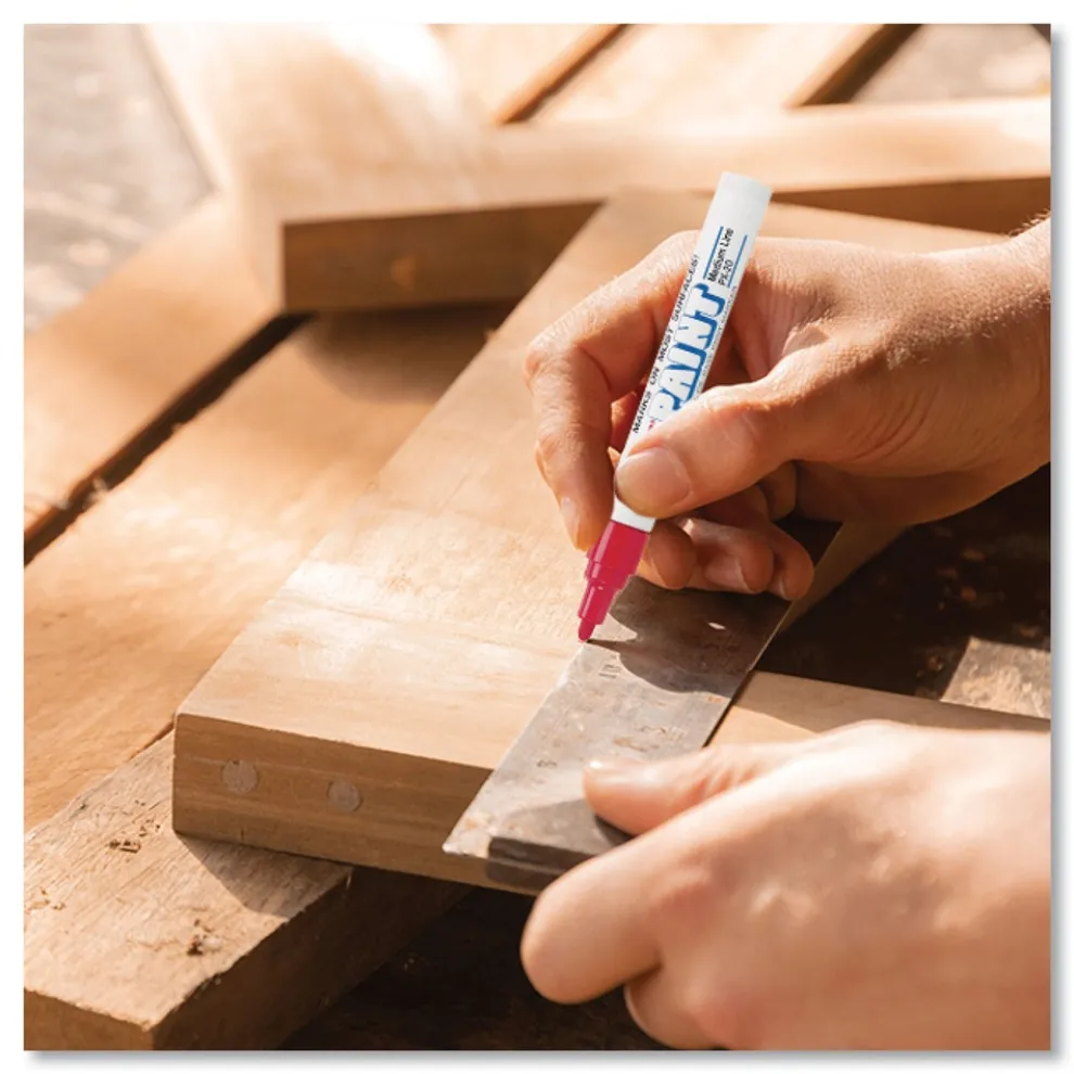 Create permanent and accurate marks on virtually any surface with uni Paint oil-based paint markers from uni-ball. These markers deliver strong and clearly visible lines. Quick-drying paint is water, fade, heat and abrasion resistant. Valve action control provides excellent flow and coverage, while also preventing the marker from drying out if left uncapped. Permanent paint colors mark opaque and glossy on both light and dark surfaces, no matter what it is applied to. The metal barrel and durable tip ensures a long marking life. Ideal for manufacturing, construction sites, automotive, metal fabrication, aviation, marking oily, greasy items and identifying parts or equipment outside.