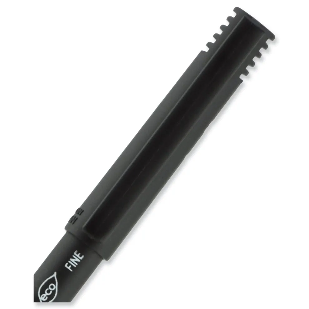 Stock your office, home or classroom with Onyx Rollerball Stick Pens from uni-ball featuring strong, long lasting tip sizes. This rollerball pen delivers the silky-smooth glide of a fountain pen without smudging for effortless writing. ONYX pens produce crisp and precise lines for intricate writing, making it easy to create super fine details in your drawings and diagrams. Capped roller pens are useful for a variety of tasks from note taking to signing checks and legal documents to uniquely embellishing fun and creative writing projects. Innovative uni Super Ink technology forms a strong bond with the paper, protecting from water, fading and fraud. A great economic and environmentally-conscious choice as this super sleek micro point roller pen is made from post-consumer recycled material.
