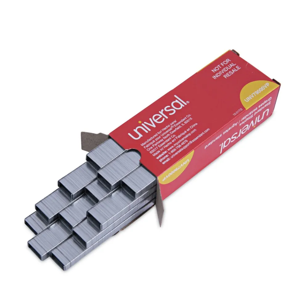 Universal UNV79000VP 0.25 in. x 0.5 in. Standard Chisel Point Staples – Steel (25000/Pack)