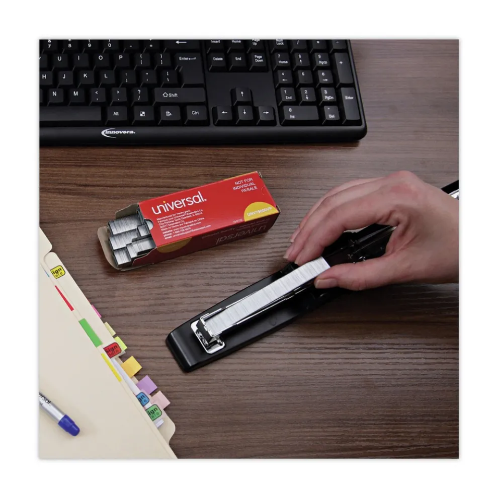 Economical staples help keep your papers stapled together, while staying within budget. Constructed with sharp chisel points that are designed to penetrate paper cleanly. Built with galvanized steel construction and standard sizing to ensure reliable performance. Compatible with standard size, manual staplers, which are sold separately. Simply open the stapler top to load, remove a row of staples from the box, and insert the row into the stapler with the points down.