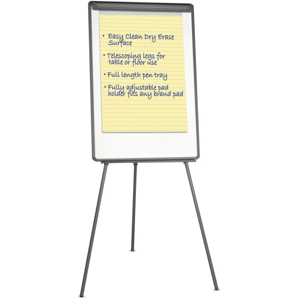 Easy-to-clean melamine board features a convenient tripod design and fully adjustable pad retainer. Sturdy and stylish, you can place it just about anywhere. Great for hotels, schools, libraries, hospitals, executive offices, conference rooms, board rooms and more.