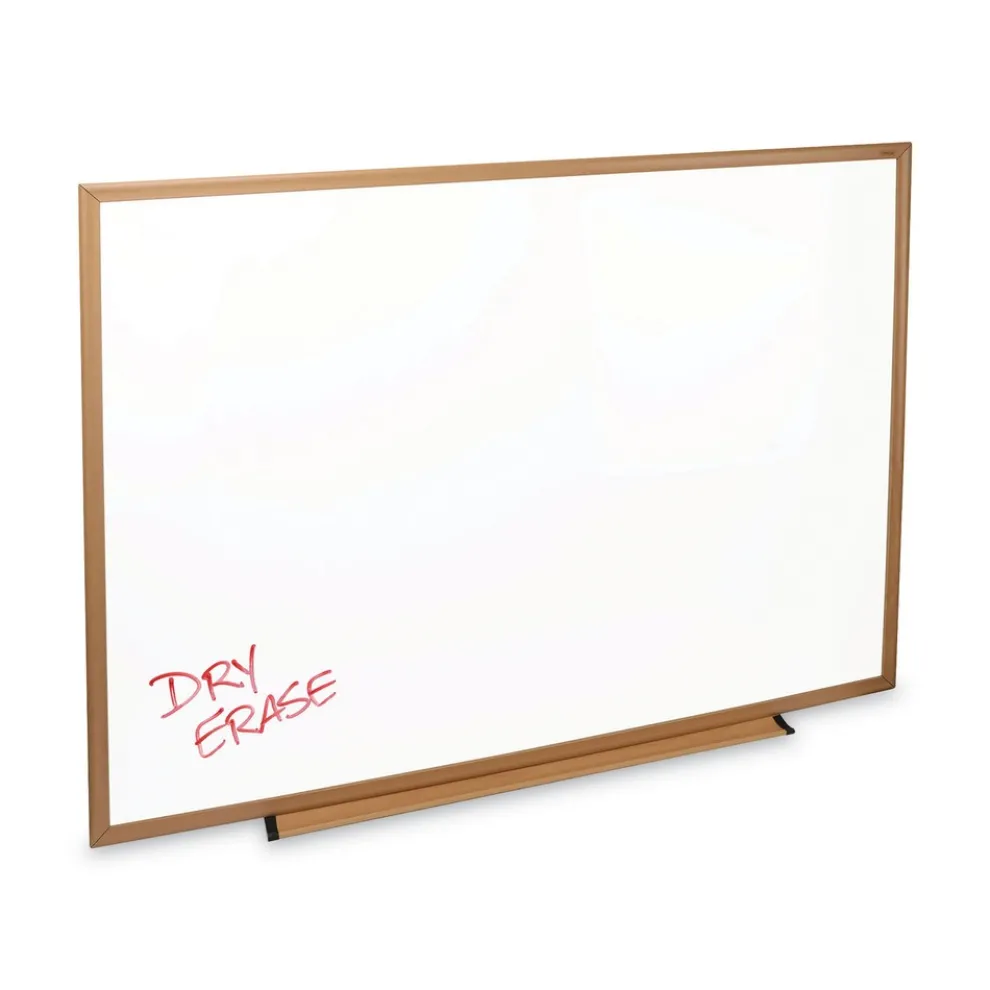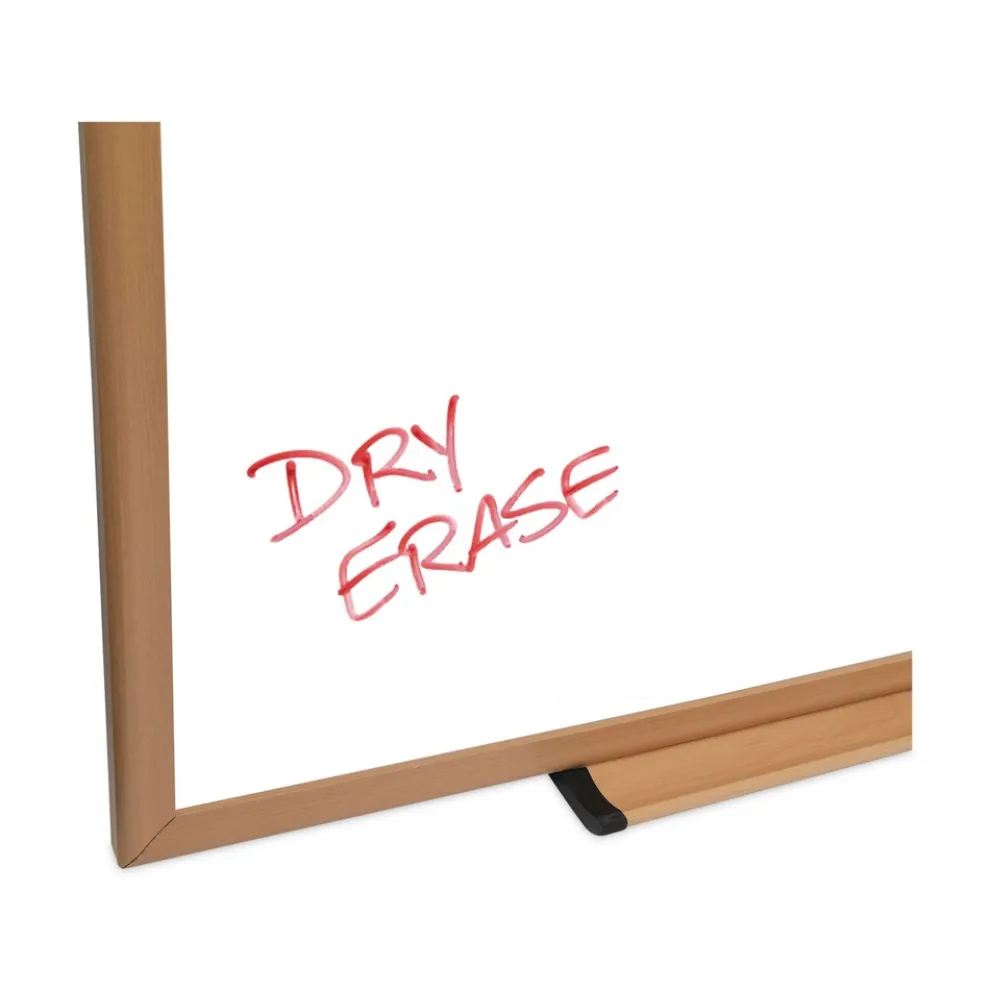48 in. x 36 in. Deluxe Melamine Dry Erase Board – Melamine White Surface, Oak Fiberboard Frame – 43618