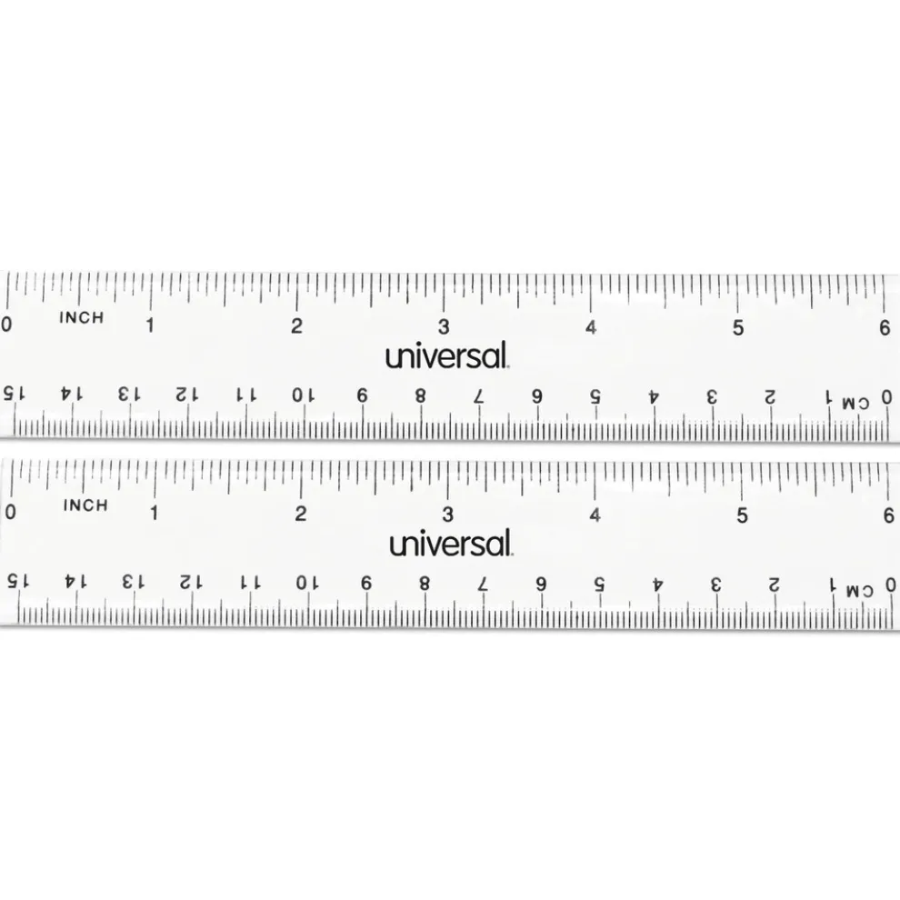 Universal UNV59025 6 in. Long Standard/Metric Plastic Ruler – Clear (2/Pack)