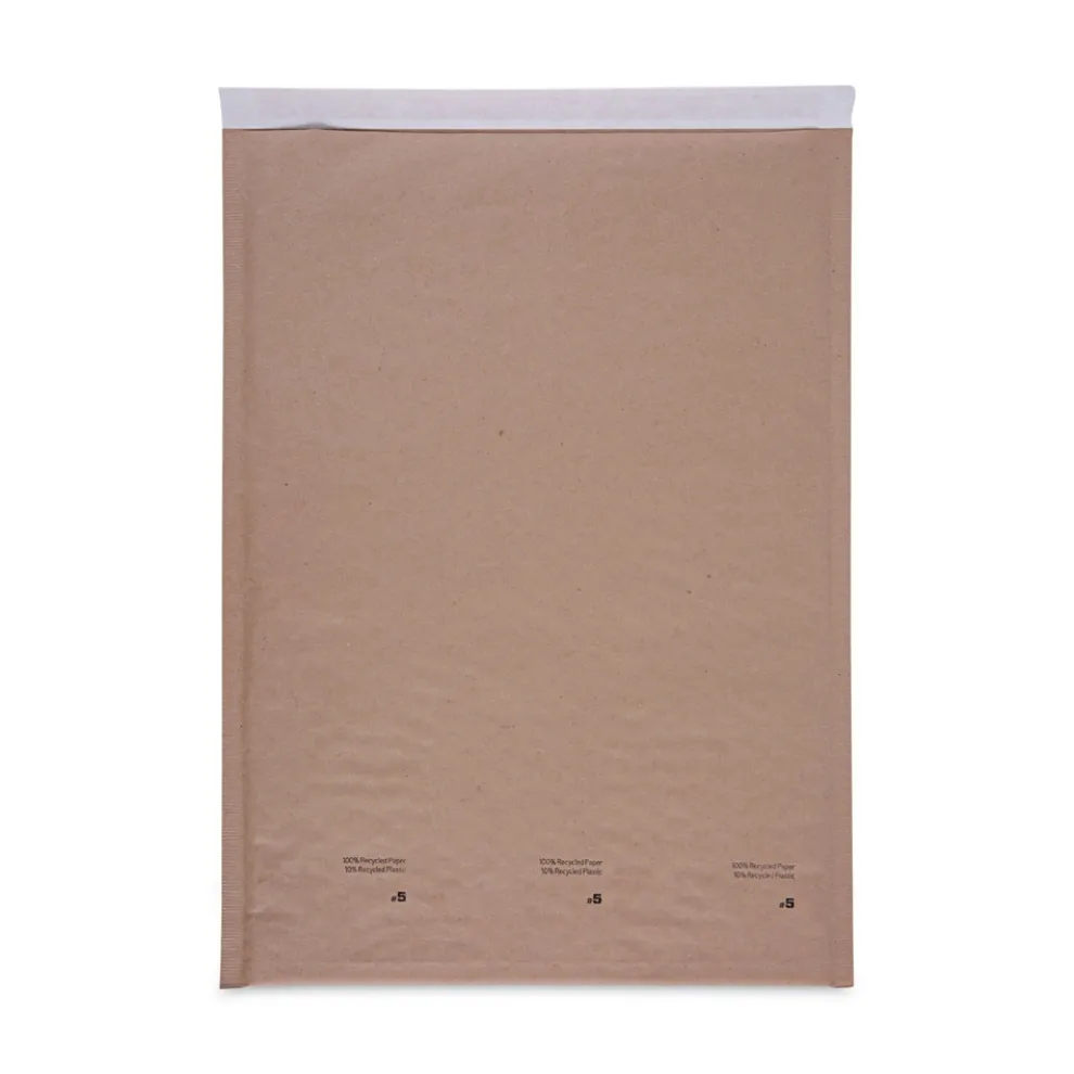 Ship your items safer with a Barrier Bubble lining that retains air better than alternative cushioning materials. Constructed with a natural kraft exterior that doesn’t require bleaching or dying to create an “unnatural color” like gold or white. Easy to write on or attach a shipping label. The fully laminated natural kraft and air cellular construction provides outstanding stiffness and puncture resistance. Self-sealing.