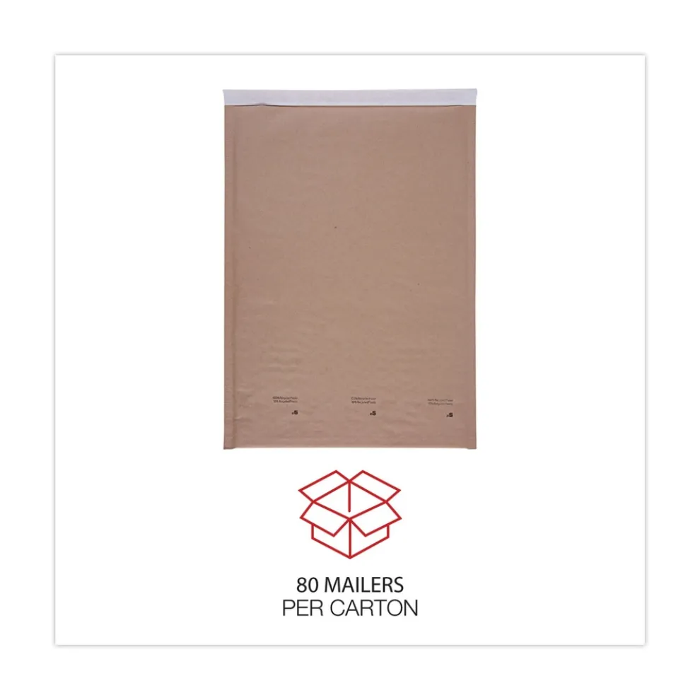 (80/Carton) 10.5 in. x 16 in. Barrier Bubble Air Cell Cushion Self-Adhesive Closure #5 Natural Self-Seal Cushioned Mailer – Kraft – 62264