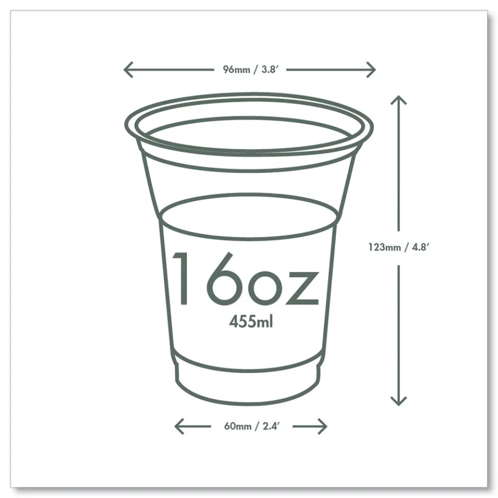 (1000/Carton) 16 oz. 96-Series Compostable Cold Cup – Clear/Green – R500YG