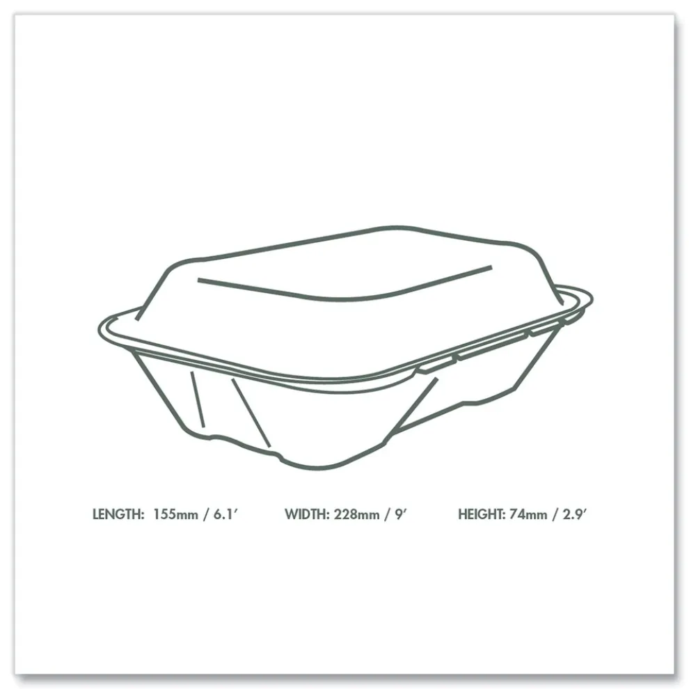 Vegware VW-HC96NFA 6.1 in. x 9 in. x 2.9 in. Nourish Molded Fiber Compostable Sugarcane Takeout Containers – Natural (200/Carton)