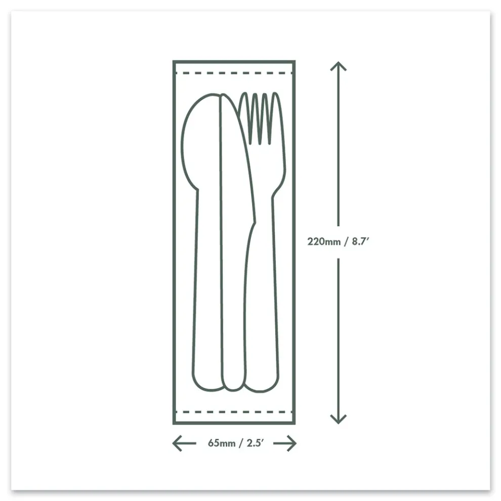 (250/Carton) Compostable Fork/Knife/Spoon/Napkin Cutlery Kits – White – VWKFSWN