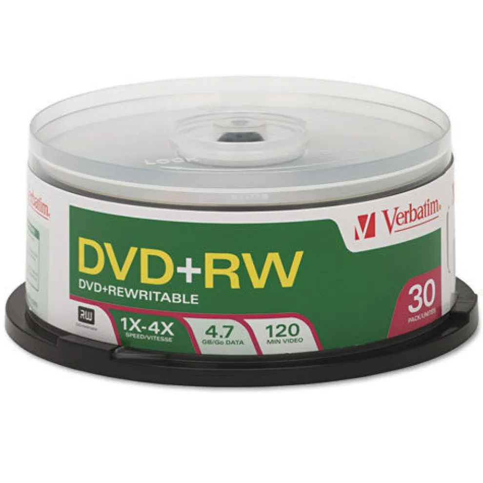Verbatim 94834 4.7 GB 4x DVD RW Rewritable Disc – Silver (30/Pack)