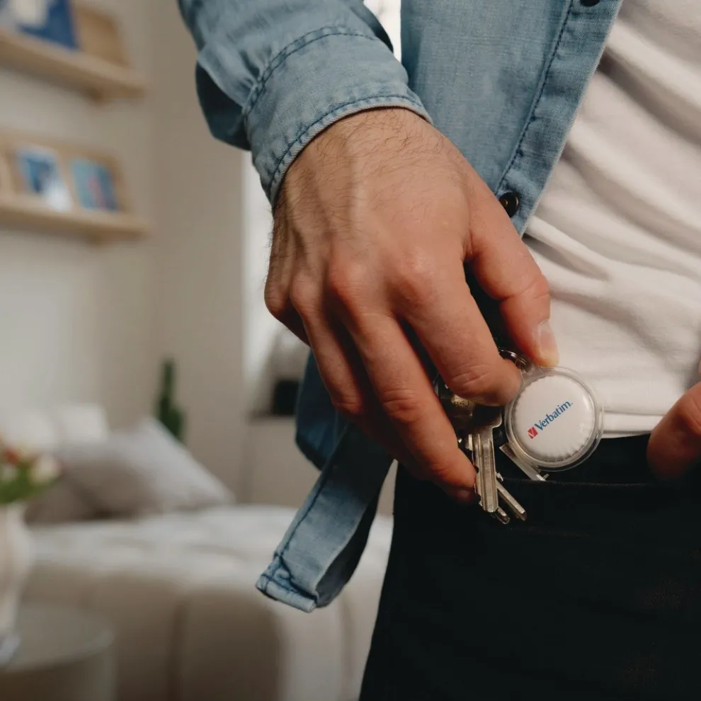Our smaller tracking device works exclusively with Apple’s Find My App. Simply attach My Finder to the item you want to track and use the Apple Find My App to locate it. When you are in close range of the Apple Find My ecosystem, you can locate your lost item by selecting “Play Sound” in the app, allowing you to follow the beep to your item. You can also select your item in the app and locate it on the map an anonymous, encrypted process to protect your privacy. With the app’s Lost Mode, you can also enter your contact details in the event that your missing item is located by someone in the Apple Find My network. With smart notifications enabled on the device by default, you will receive an alert on your phone when your My Finder is out of Bluetooth range. Verbatim’s My Finder is water-resistant, dustproof, and has up to 12 months battery power.