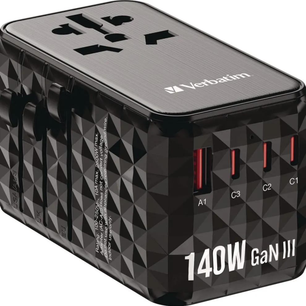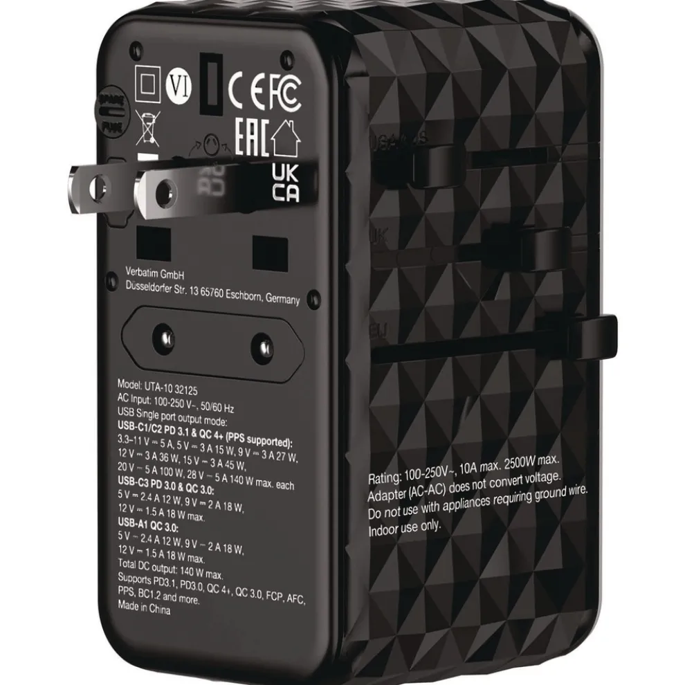 Verbatim 32125 UTA-10 GaN III 3-USB-A/3-USB-C Universal Travel Adapter