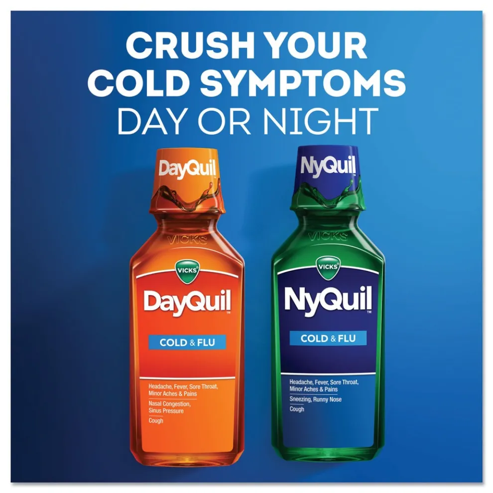 (12/Carton) 12 oz. Bottle NyQuil Cold and Flu Nighttime Liquid – 01426