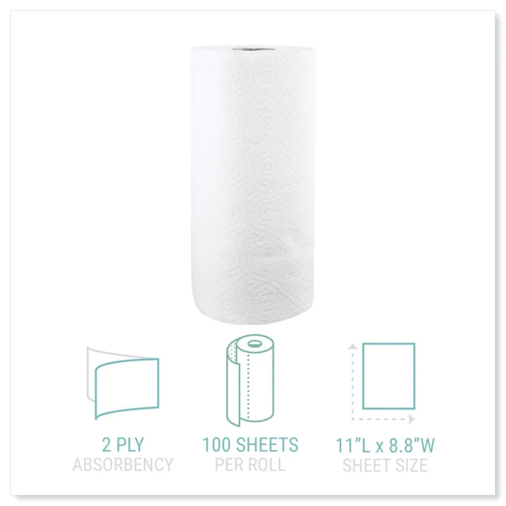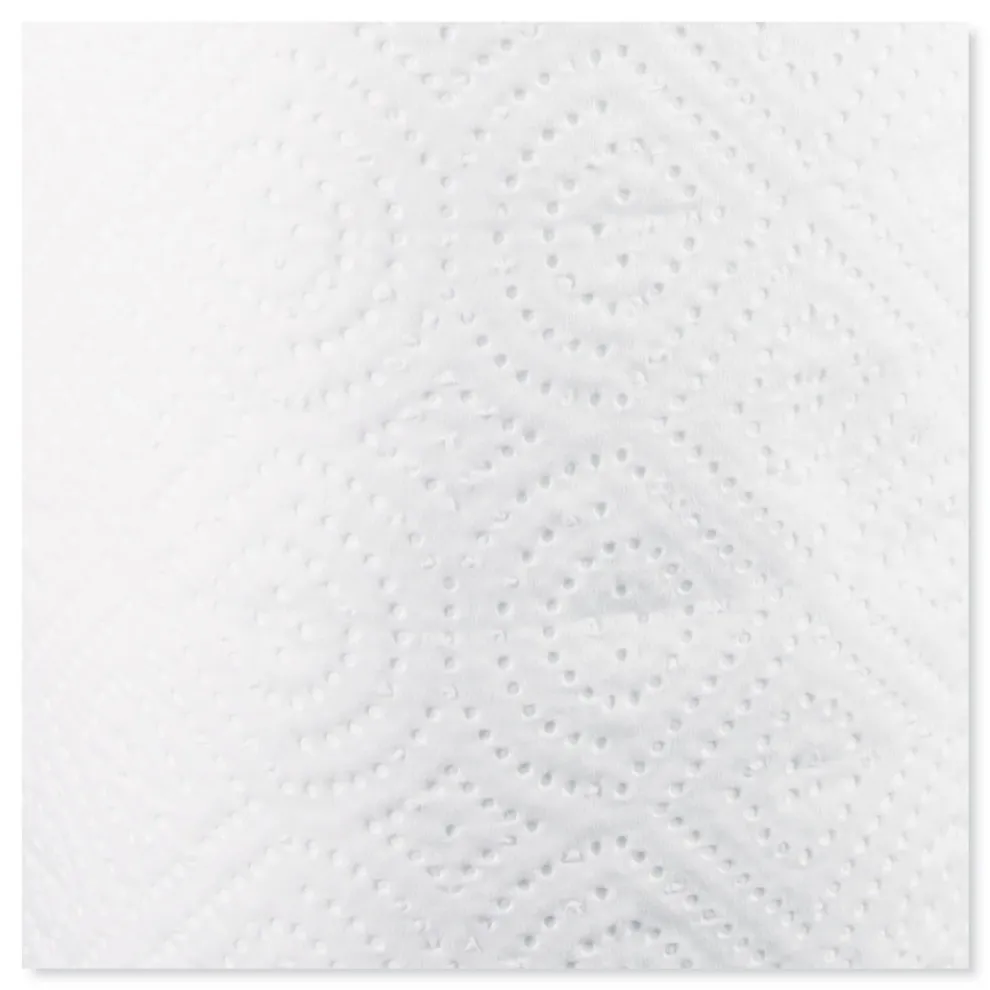Durable, 2-ply, white, unscented paper kitchen roll towels. Engineered with premium embossing and enhanced absorbency paper towels to get the most out of each roll. Great for general purpose cleaning and wiping in kitchens, bathrooms, office spaces, and industrial settings. Perforated sheets for easy tearing to suit the size of the spill. Individually wrapped for maximum cleanliness and convenient storage.