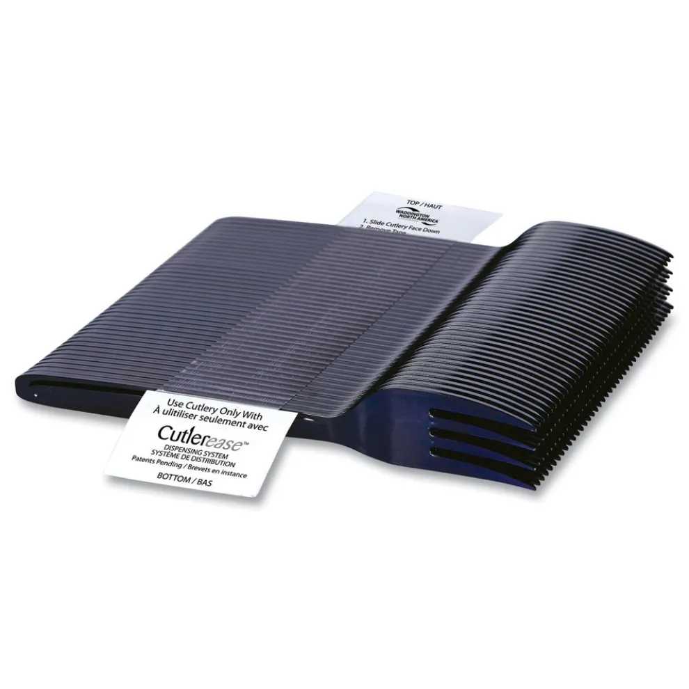For use with the Cutlerease® Dispensing System (sold separately). Cutlery in the dispensing system stays hygienic with no cross contamination, thanks to a catch tray to drop into. Handle-first delivery maintains cutlery’s sanitary eating area.