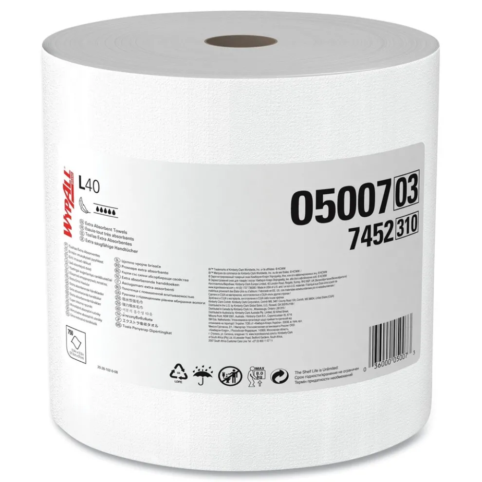 WypAll 05007 750/Roll L40 Wipers Jumbo Roll – White