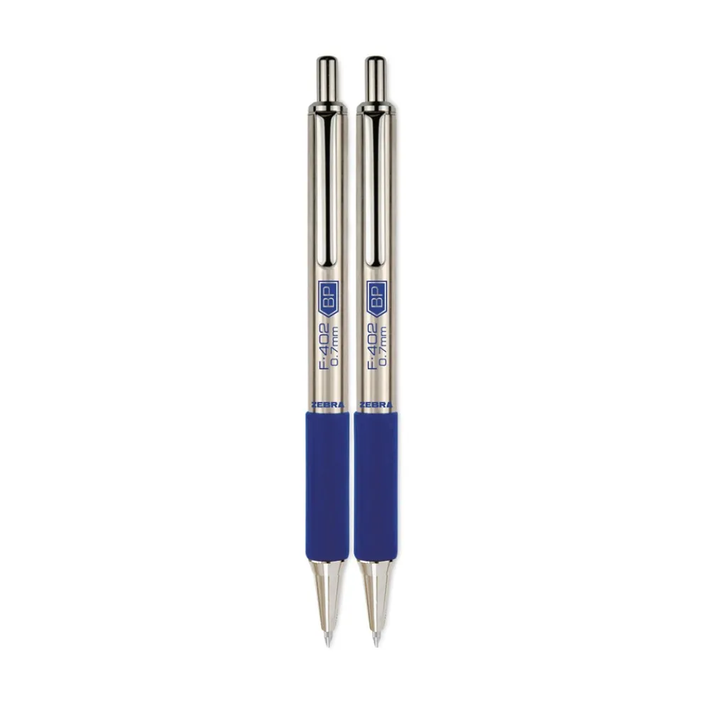 Zebra 29222 Fine 0.7 mm F-402 Retractable Ballpoint Pen – Blue Ink/Stainless Steel/Blue Barrel (2/Pack)