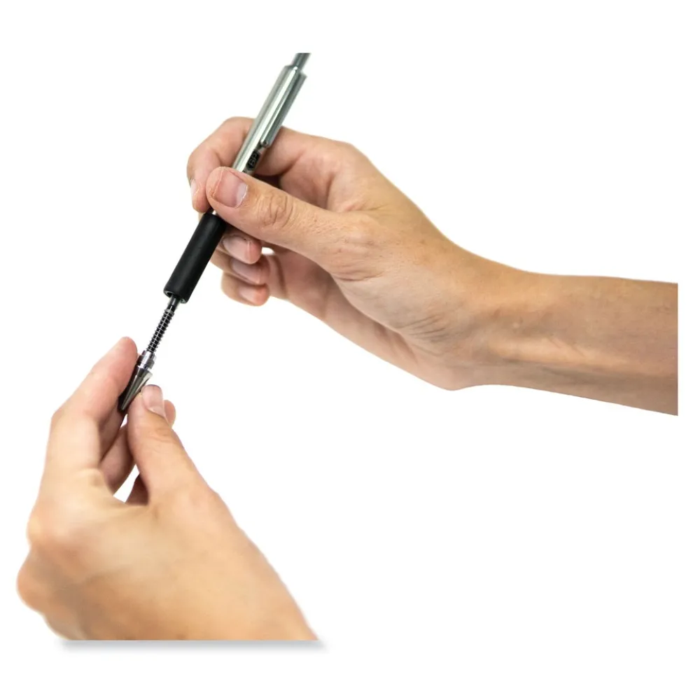 The Zebra F-402 Ballpoint Retractable Pen is a high-quality writing instrument which manages to be both sturdy and stylish. The F-402 Series of the Steel family offers a more weighted writing experience for enhanced comfort. With a stainless steel barrel that offers durability and the added luxury of a non-slip rubberized grip, this pen is the finest choice for your everyday writing needs. The designer metal clip provides an elegant yet confident clasp for the executive shirt pocket. Experience high performance writing with the original easy-glide ink and refill for continued use. Compliment your personal style with an elegant upgrade to the Original Stainless Steel Ballpoint Pen.