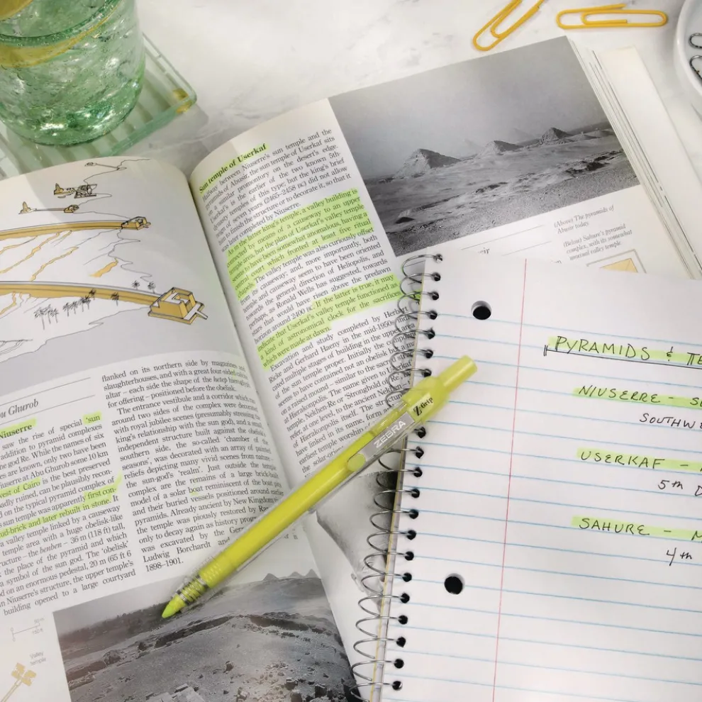 Zebra Z-Grip Retractable Highlighter pens help you express your unique creativity with vibrant neon color. Pen’s unique neon color provides the pop of color your project needs. Keep a set of Z-Grip Highlighters in your desk drawer, art bin or backpack for creativity at your fingertips. Create personalized greeting cards, sketch out a new idea or add dashes of precision color to any project. Add some beauty to your bullet journal or planner. Bring a touch of color to handmade cards, letters and art presentations or gift to your favorite budding artist. Excellent for marking up important passages in texts. Complete your creative kit with additional Zebra Pen artists’ instruments like Sarasa Fineliners, Zensations Technical and Calligraphy pens.